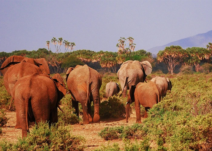 Saying farewell to Amboseli, we enjoy an early breakfast before heading to Tsavo East National Park. Known for its red dust elephants, the park’s soil is rusty from oxidation, and herds often roll in it for a muddy bath, creating vibrant coats. During our game drives, we may spot other “Big Five” animals like buffalo, lions, and leopards. We’ll also search for Tsavo’s famous mane-less lions, whose man-eating reputation from a century ago still fascinates visitors. Our stay at Ashnil Aruba Lodge offers comfortable accommodations near Aruba Dam, a historic waterhole attracting countless wildlife.