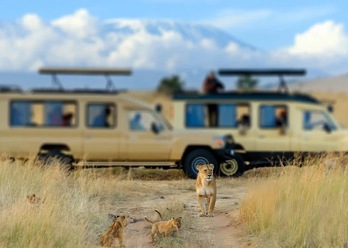 Arrive at Amboseli National Park, renowned for its majestic views of Mount Kilimanjaro and vibrant wildlife. Home to vast elephant herds, buffaloes, giraffes, and predators like lions and leopards, the park captivates with its natural splendor. After gate formalities, proceed to the luxurious Elewana Tortilis Camp for a delectable lunch and seamless check-in. Embark on an exhilarating afternoon game drive, seeking the Big Five and iconic residents like elephants and baboons. As dusk falls, savor a sundowner experience, sipping refreshing drinks while the savannah glows under Mount Kilimanjaro’s silhouette. Overnight at Elewana Tortilis Camp.
