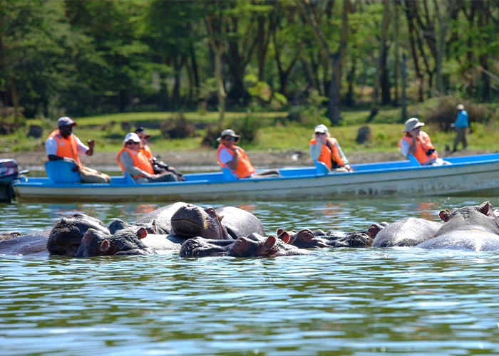 Journey to Lake Naivasha, a serene freshwater lake teeming with hippos, vibrant birdlife, and aquatic wonders. Embark on a captivating boat ride, gliding across the lake to observe hippos, fish eagles, and African darters in their natural habitat. Visit Crescent Island, a private game sanctuary where giraffes, zebras, and antelopes roam freely. Stroll among the wildlife, soaking in breathtaking views of the lake and surrounding landscape. Conclude your day at Loldia House, a charming retreat offering elegant accommodations, delectable cuisine, and a tranquil ambiance, perfect for unwinding amidst the African countryside’s stunning vistas.